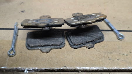 They still had enough pad on them where they should have stopped but they were covered in stuff and chipped at the bottom for some unknown reason. Brake pads are something that would have to be replaced on a bike anyway but I should have had more miles on them than I got. This might have been my fault as I decided after the front derailleur that I was going to just ride this bike through what ever and see what fails. If it was raining out I was still riding my bike. I had to ride through some mud or other obstacle that I will have to clean off later and might ruin the bike sure what ever I am taking it through that too. That has been my mentality on this bike now. I still don't think the brake pads should have needed replacing yet.